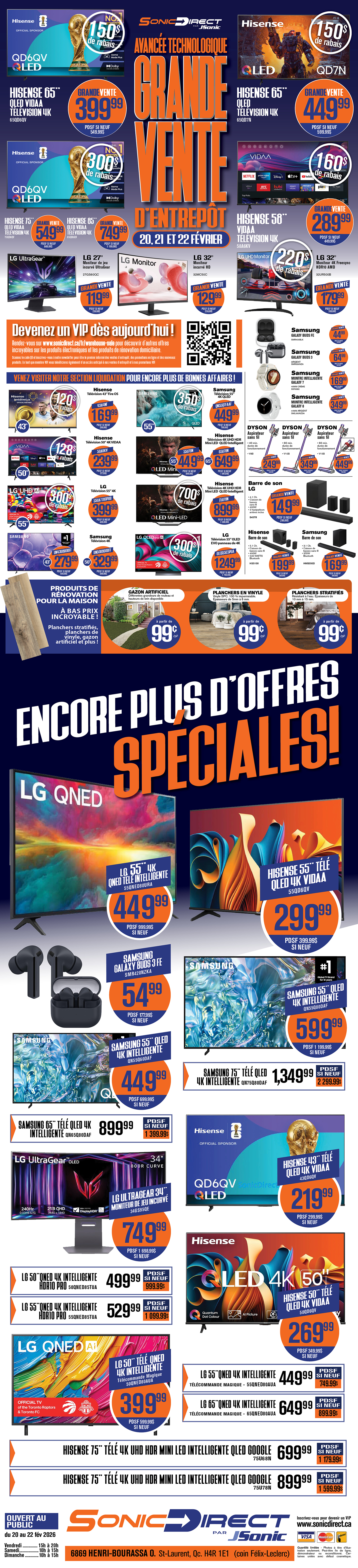 Heures d'ouverture de la vente : Vendredi 20 février, de 15 h à 20 h